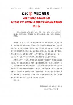 [投资者关系]601398_2025-10-01-工商银行-工商银行关于发布2025半年度社会责任与可持续金融专题报告的公告(银创产业通www.chanyetong.net)