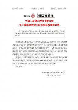 [投资者关系]601398_2025-10-01-工商银行-工商银行关于首席财务官任职资格获核准的公告(银创产业通www.chanyetong.net)