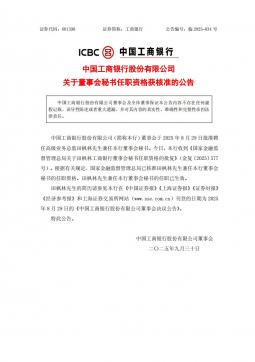 [投资者关系]601398_2025-10-01-工商银行-工商银行关于董事会秘书任职资格获核准的公告(银创产业通www.chanyetong.net)