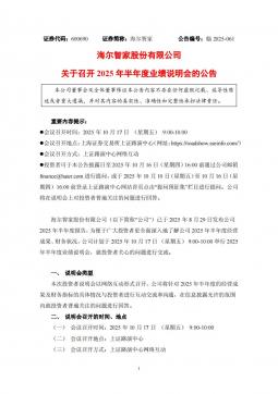 [投资者关系]600690_2025-10-01-海尔智家-海尔智家股份有限公司关于召开2025年半年度业绩说明会的公告(银创产业通www.chanyetong.net)