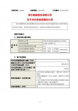 [投资者关系]600690_2025-10-01-海尔智家-海尔智家股份有限公司关于对外担保进展的公告(银创产业通www.chanyetong.net)