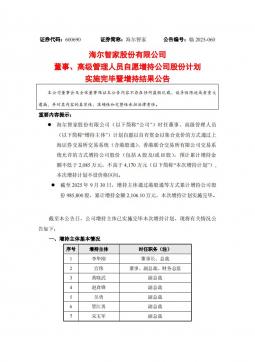 [投资者关系]600690_2025-10-01-海尔智家-海尔智家股份有限公司董事、高级管理人员自愿增持公司股份计划实施完毕暨增持结果公告(银创产业通www.chanyetong.net)