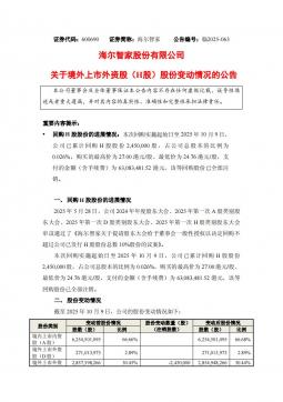 [投资者关系]600690_2025-10-10-海尔智家-海尔智家股份有限公司关于境外上市外资股(H股)股份变动情况的公告(银创产业通www.chanyetong.net)