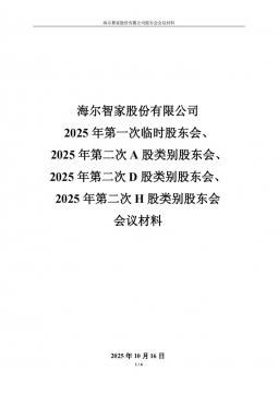 [投资者关系]600690_2025-10-01-海尔智家-海尔智家股份有限公司2025年第一次临时股东会、2025年第二次A股、D股、H股类别股东会会议材料(银创产业通www.chanyetong.net)