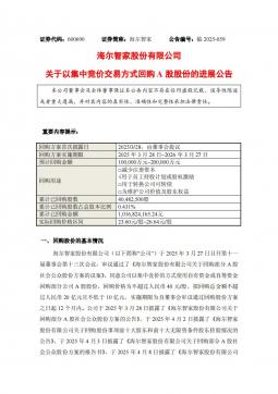 [投资者关系]600690_2025-10-01-海尔智家-海尔智家股份有限公司关于以集中竞价交易方式回购A股股份的进展公告(银创产业通www.chanyetong.net)