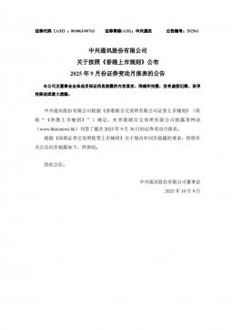 [投资者关系]000063_2025-10-09-中兴通讯-关于按照《香港上市规则》公布2025年9月份证券变动月报表的公告(银创产业通www.chanyetong.net)