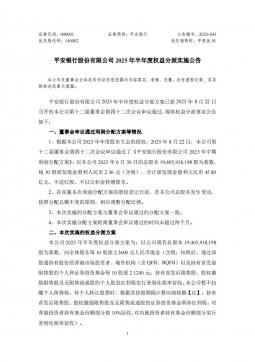 [投资者关系]000001_2025-09-30-平安银行-2025年半年度权益分派实施公告(银创产业通www.chanyetong.net)