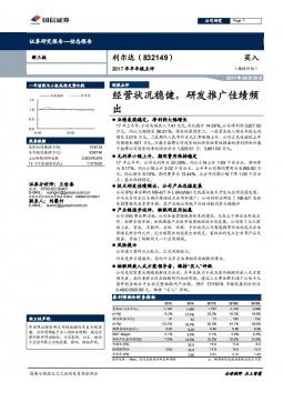 [个股研究]920249_2017年半年报点评:经营状况稳健,研发推广佳绩频出(银创产业通www.chanyetong.net)