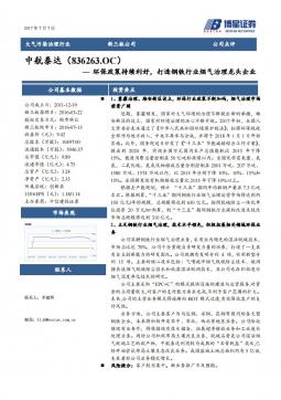 [个股研究]920263_环保政策持续利好,打造钢铁行业烟气治理龙头企业(银创产业通www.chanyetong.net)