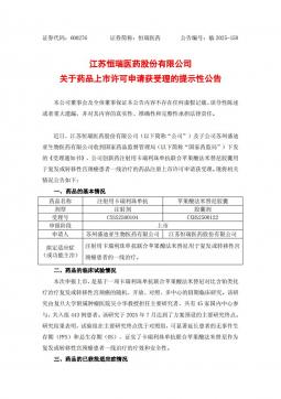 [投资者关系]600276_2025-10-01-恒瑞医药-恒瑞医药关于药品上市许可申请获受理的提示性公告(银创产业通www.chanyetong.net)