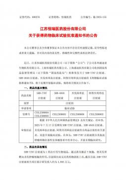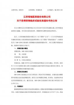 [投资者关系]600276_2025-09-30-恒瑞医药-恒瑞医药关于获得药物临床试验批准通知书的公告(银创产业通www.chanyetong.net)