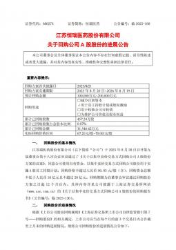 [投资者关系]600276_2025-10-10-恒瑞医药-恒瑞医药关于回购公司A股股份的进展公告(银创产业通www.chanyetong.net)