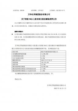 [投资者关系]600309_2025-10-01-万华化学-万华化学关于持股5%以上股东部分股份解除质押公告(银创产业通www.chanyetong.net)