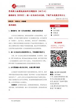[个股研究]920523_寻找新三板精选层标的专题报告(四十六):锂一次电池行业先驱,下游产业发展空间巨大(银创产业通www.chanyetong.net)