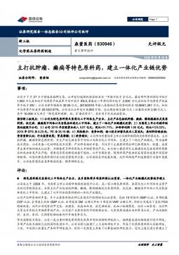 [个股研究]920946_重大事件快评:主打抗肿瘤、癫痫等特色原料药,建立一体化产业链优势(银创产业通www.chanyetong.net)