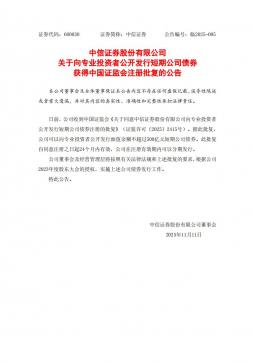 [投资者关系]600030_2025-11-12-中信证券-中信证券股份有限公司关于向专业投资者公开发行短期公司债券获得中国证监会注册批复的公告(银创产业通www.chanyetong.net)