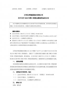 [投资者关系]600309_2025-11-14-万华化学-万华化学关于召开2025年第三季度业绩说明会的公告(银创产业通www.chanyetong.net)