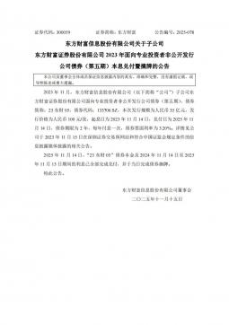[投资者关系]300059_2025-11-15-东方财富-东方财富信息股份有限公司关于子公司东方财富证券股份有限公司2023年面向专业投资者非公开发行公司债券(第五期)本息兑付暨摘牌的公告(银创产业通www.chanyetong.net)