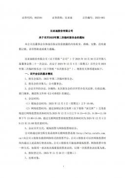 [投资者关系]002594_2025-11-13-比亚迪-关于召开2025年第二次临时股东会的通知(银创产业通www.chanyetong.net)