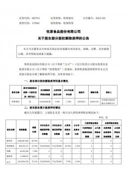 [投资者关系]002714_2025-11-14-牧原股份-关于股东部分股权解除质押的公告(银创产业通www.chanyetong.net)