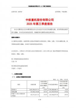 [企业年报]中航重机:中航重机2025年第三季度报告(银创产业通www.chanyetong.net)