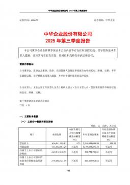 [企业年报]中华企业:中华企业股份有限公司2025年第三季度报告(银创产业通www.chanyetong.net)