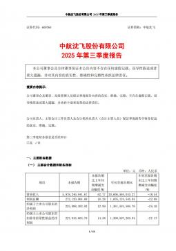 [企业年报]中航沈飞:中航沈飞股份有限公司2025年第三季度报告(银创产业通www.chanyetong.net)