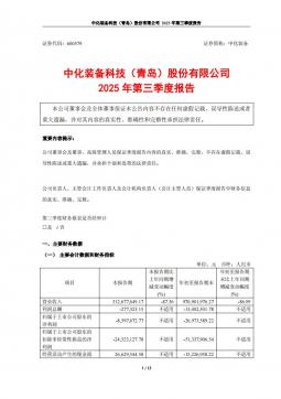 [企业年报]中化装备:中化装备科技(青岛)股份有限公司2025年第三季度报告(银创产业通www.chanyetong.net)
