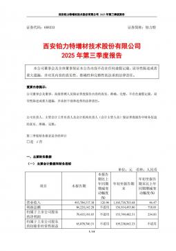 [企业年报]铂力特:西安铂力特增材技术股份有限公司2025年第三季度报告(银创产业通www.chanyetong.net)