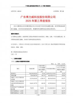 [企业年报]博力威:广东博力威科技股份有限公司2025年第三季度报告(银创产业通www.chanyetong.net)