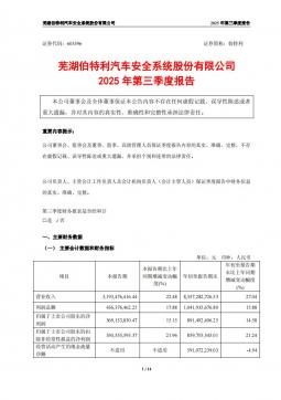 [企业年报]伯特利:伯特利2025年第三季度报告(银创产业通www.chanyetong.net)