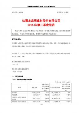 [企业年报]法狮龙:法狮龙家居建材股份有限公司2025年第三季度报告(银创产业通www.chanyetong.net)