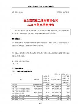 [企业年报]法兰泰克:2025年第三季度报告(银创产业通www.chanyetong.net)