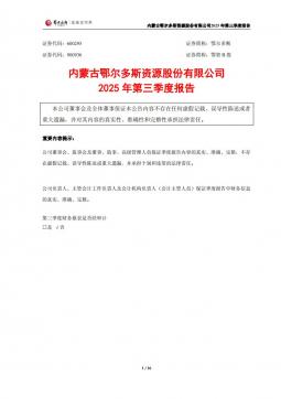 [企业年报]鄂尔多斯:内蒙古鄂尔多斯资源股份有限公司2025年第三季度报告(银创产业通www.chanyetong.net)