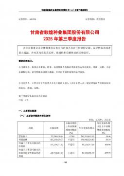 [企业年报]敦煌种业:甘肃省敦煌种业集团股份有限公司2025年第三季度报告(银创产业通www.chanyetong.net)