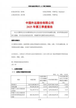 [企业年报]中国外运:2025年第三季度报告(银创产业通www.chanyetong.net)