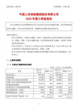 [企业年报]中国人保:中国人保2025年第三季度报告(银创产业通www.chanyetong.net)