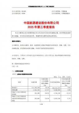 [企业年报]中国能建:中国能源建设股份有限公司2025年第三季度报告(银创产业通www.chanyetong.net)