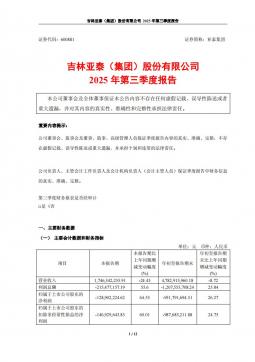 [企业年报]亚泰集团:吉林亚泰(集团)股份有限公司2025年第三季度报告(银创产业通www.chanyetong.net)