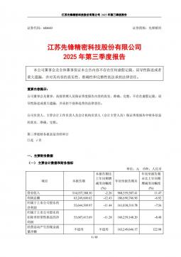 [企业年报]先锋精科:先锋精科2025年第三季度报告(银创产业通www.chanyetong.net)