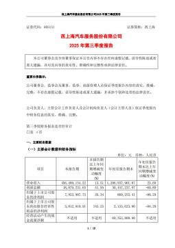 [企业年报]西上海:西上海2025年第三季度报告(银创产业通www.chanyetong.net)