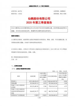 [企业年报]仙鹤股份:仙鹤股份有限公司2025年第三季度报告(银创产业通www.chanyetong.net)
