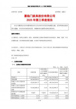 [企业年报]喜临门:喜临门家具股份有限公司2025年第三季度报告(银创产业通www.chanyetong.net)