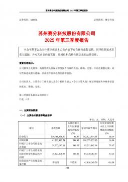 [企业年报]赛分科技:苏州赛分科技股份有限公司2025年第三季度报告(银创产业通www.chanyetong.net)