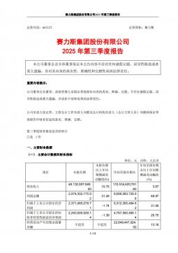 [企业年报]赛力斯:2025年第三季度报告(银创产业通www.chanyetong.net)