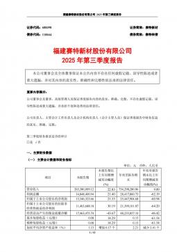 [企业年报]赛特新材:赛特新材:2025年第三季度报告(银创产业通www.chanyetong.net)