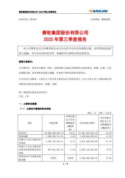 [企业年报]赛轮轮胎:2025年第三季度报告(银创产业通www.chanyetong.net)
