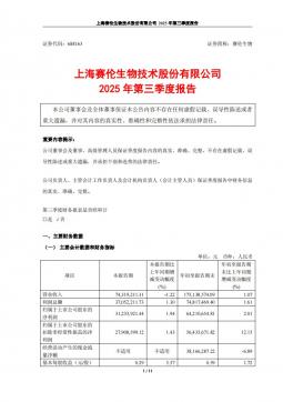 [企业年报]赛伦生物:赛伦生物:2025年第三季度报告(银创产业通www.chanyetong.net)