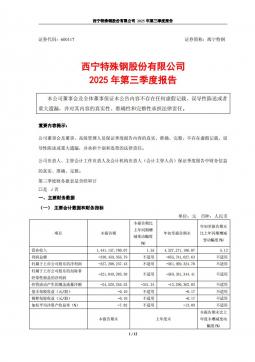 [企业年报]西宁特钢:西宁特殊钢股份有限公司2025年第三季度报告(银创产业通www.chanyetong.net)