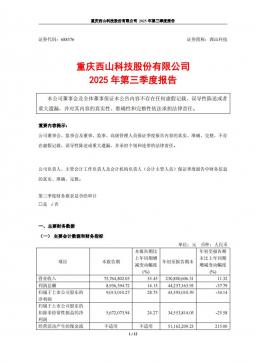 [企业年报]西山科技:重庆西山科技股份有限公司2025年第三季度报告(银创产业通www.chanyetong.net)